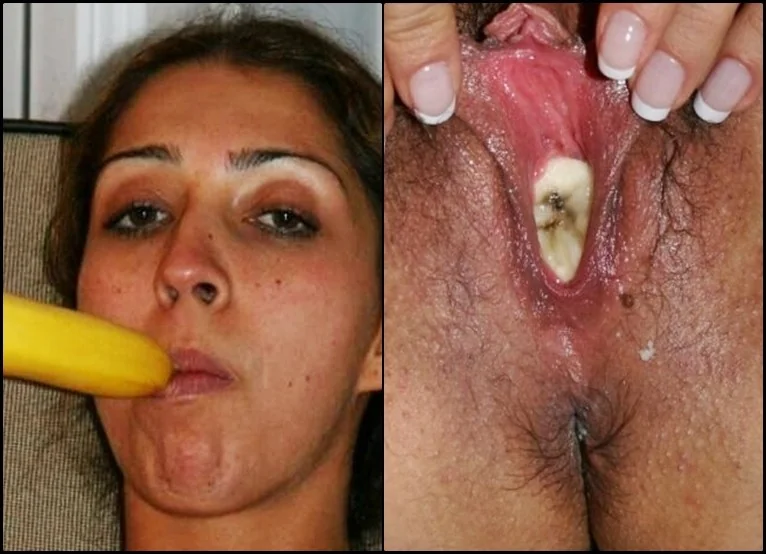 Girl puts a banana in her pussy and shows it