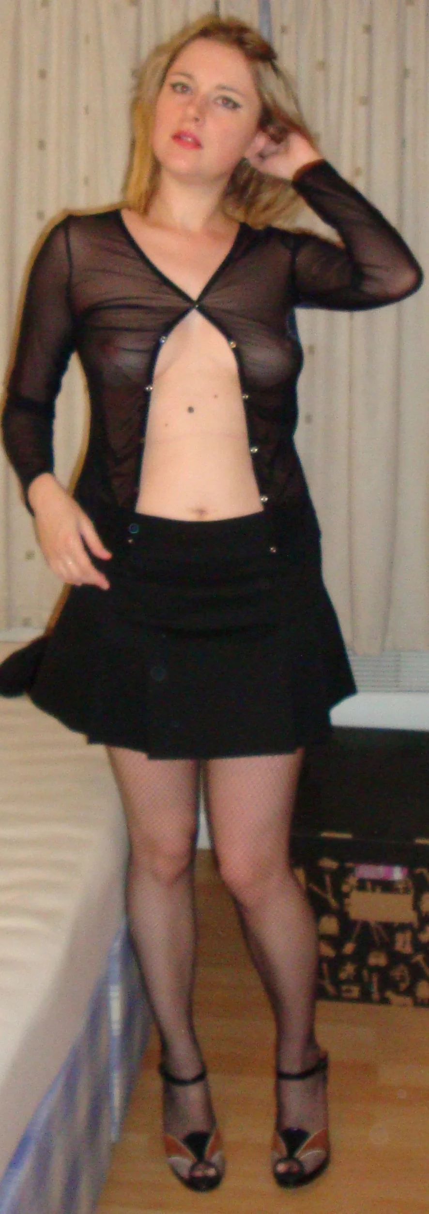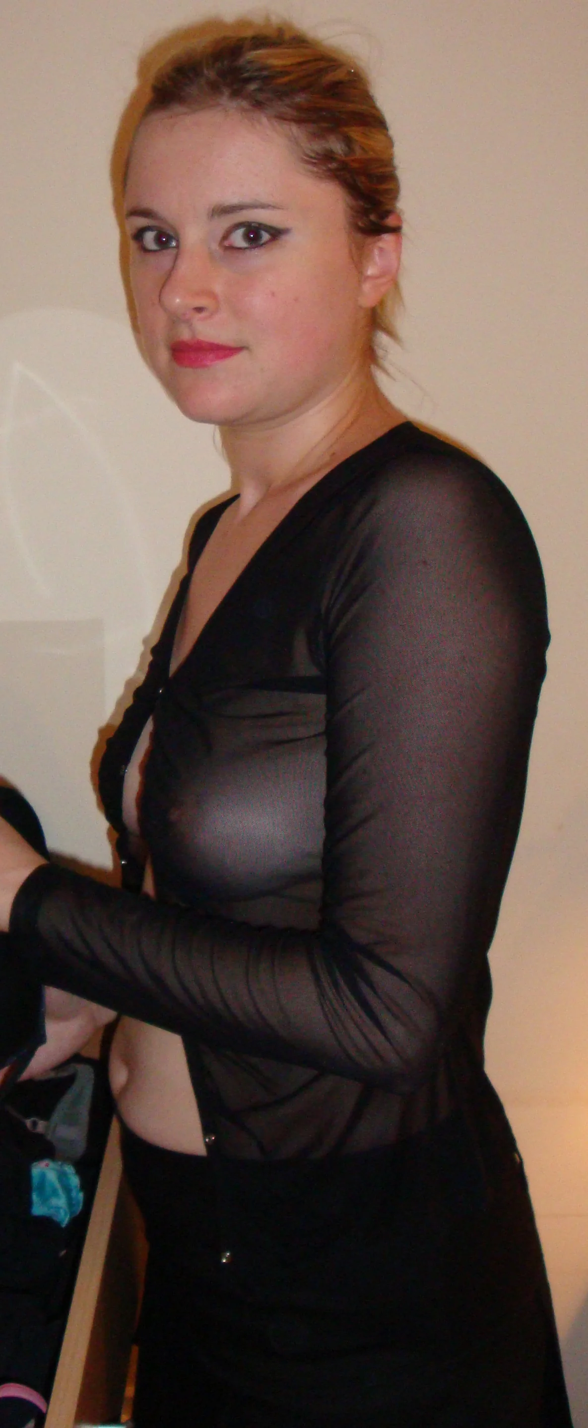 Se quita la ropa y se mete una gran polla en la boca