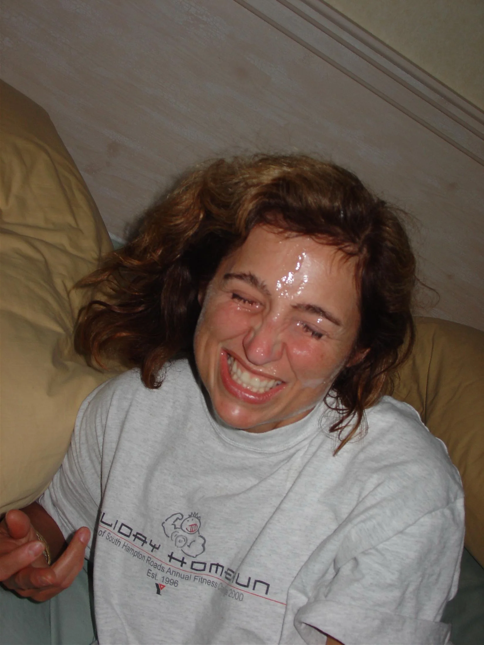 Visage d'une beauté est aspergé de sperme chaud
