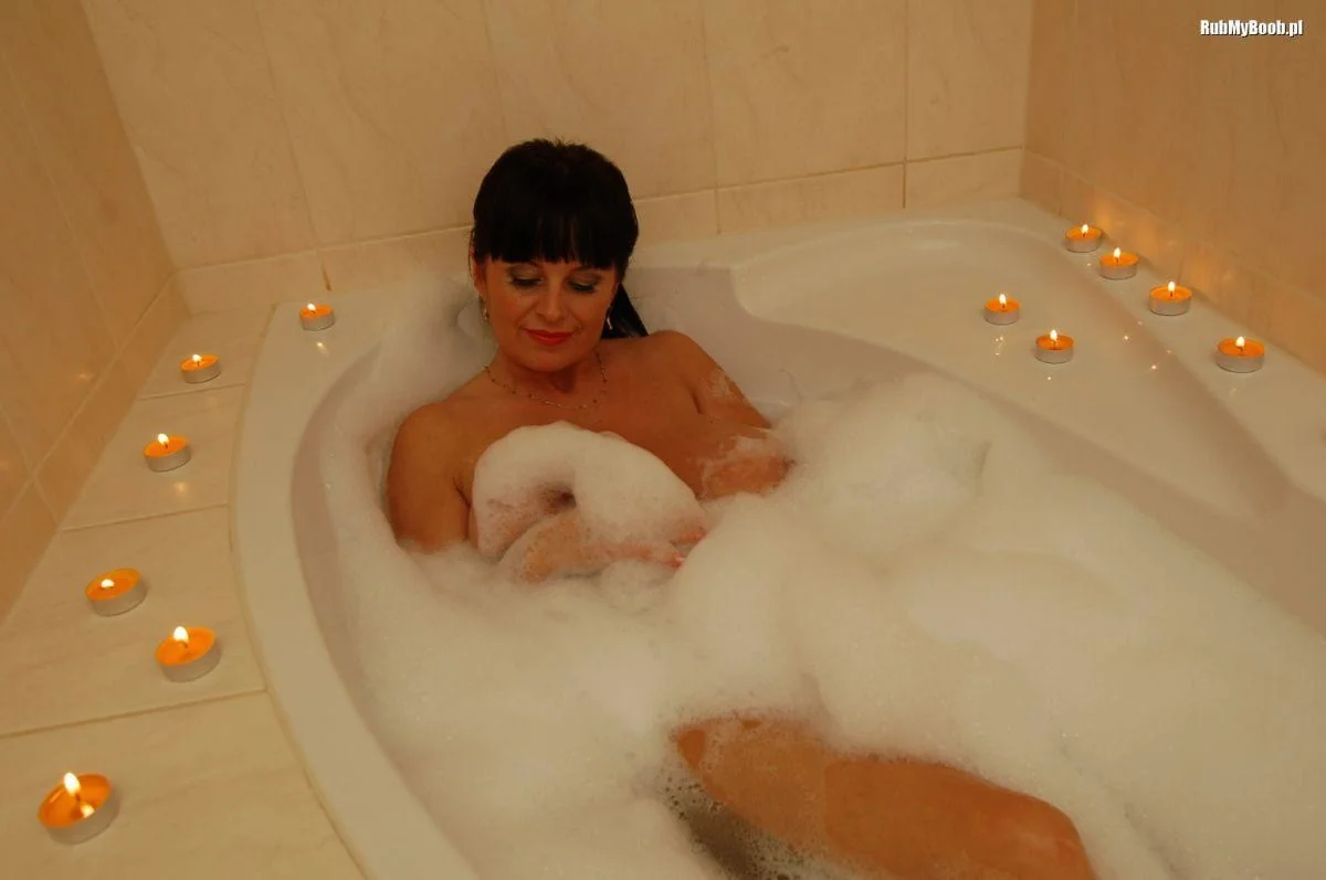 Femme mûre aux gros seins dans la salle de bain