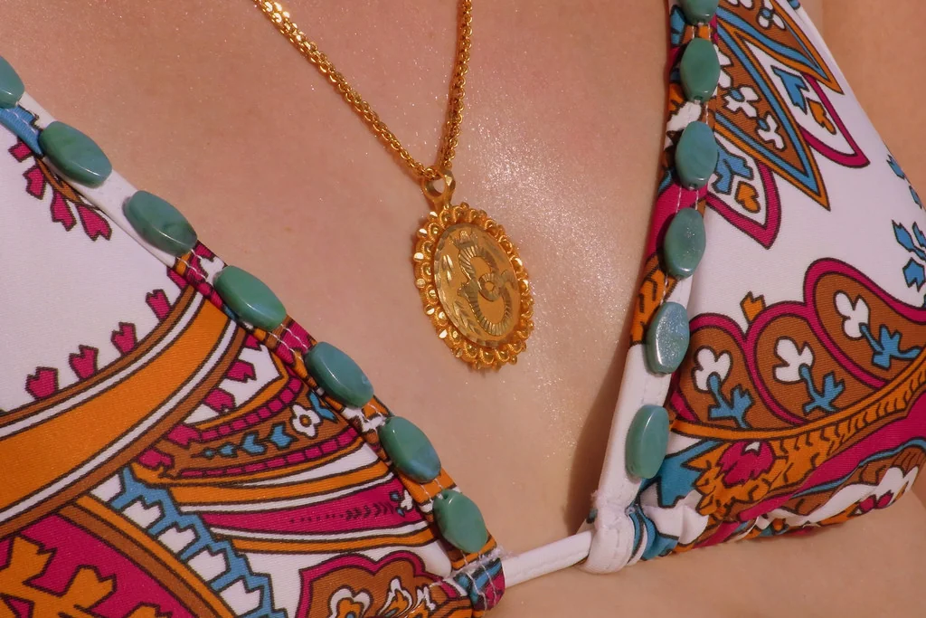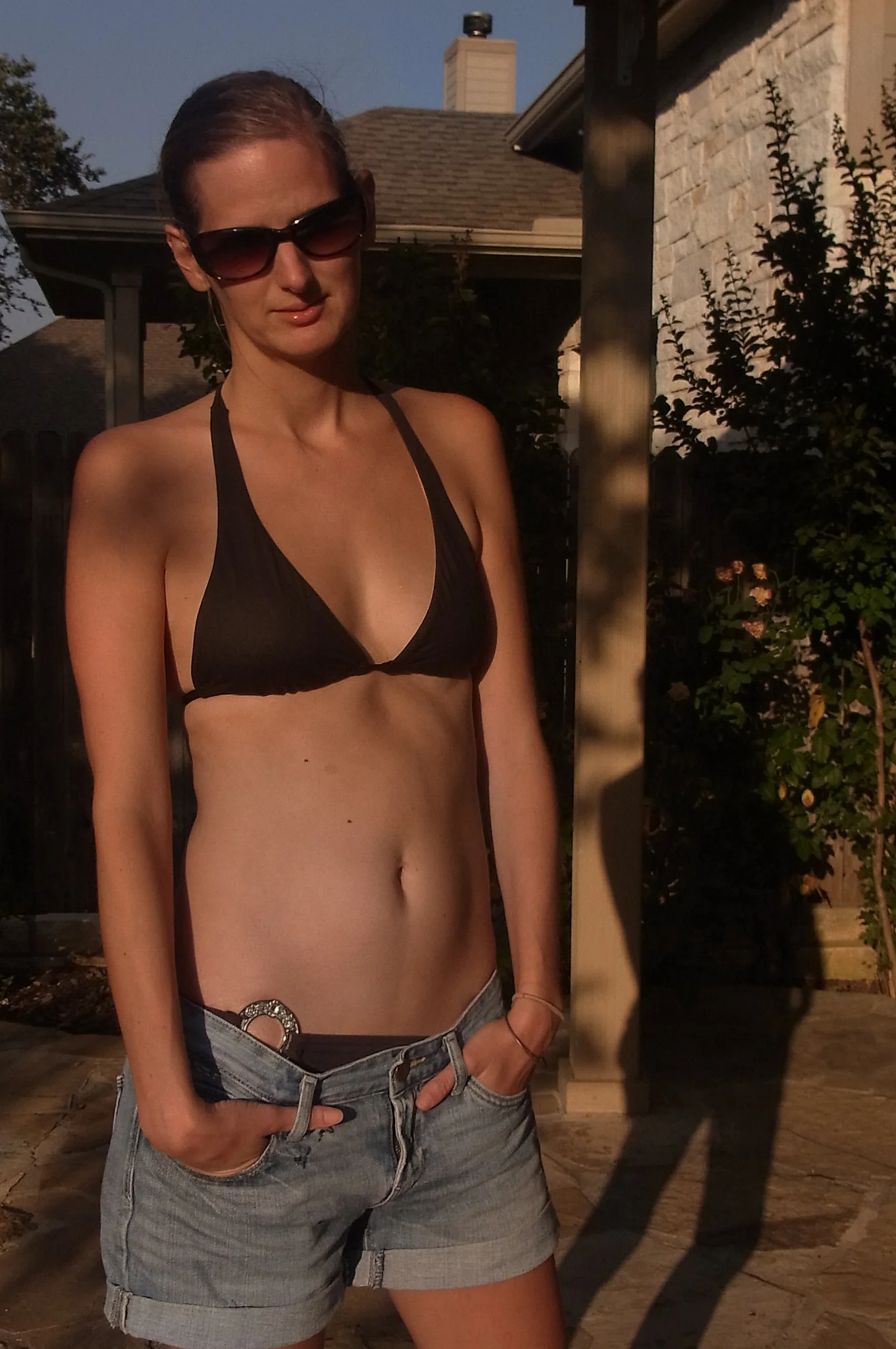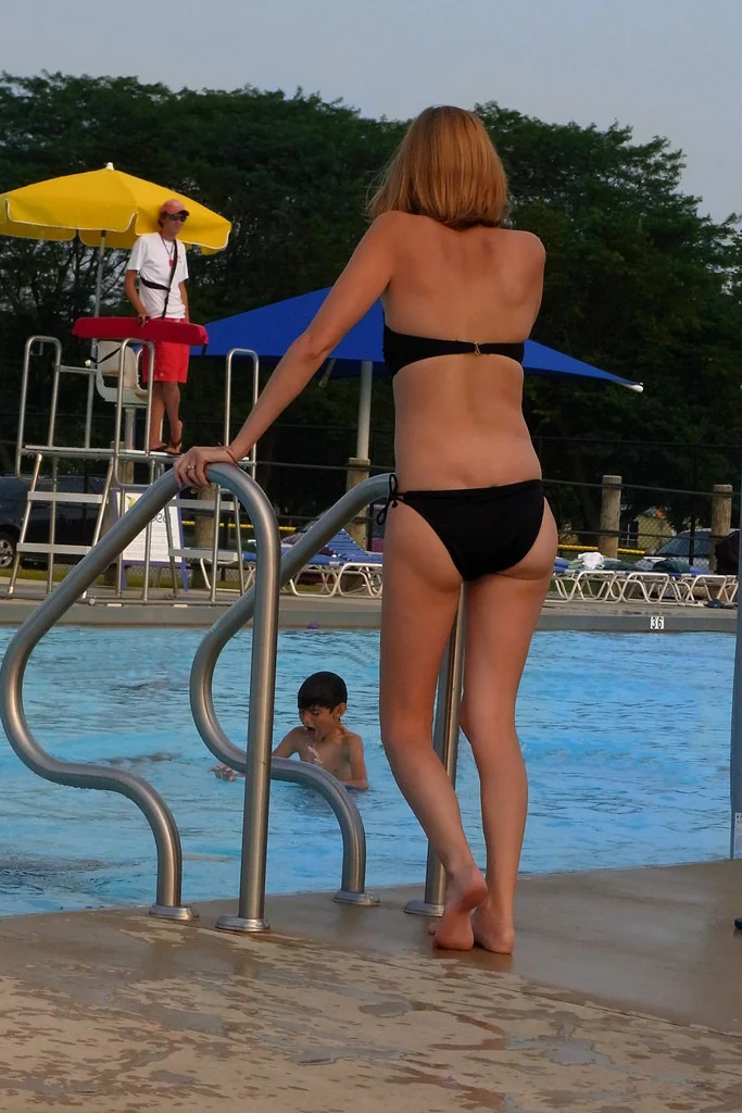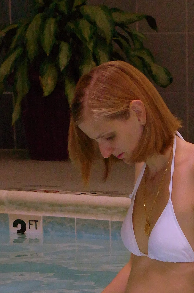 Rossa magra in costumi da bagno diversi