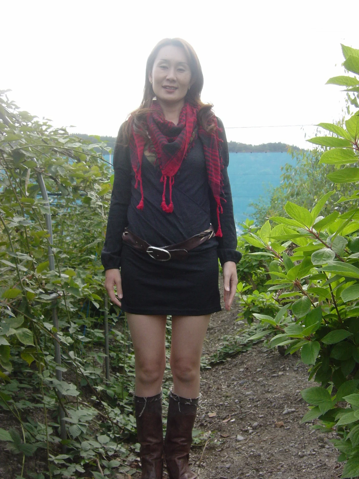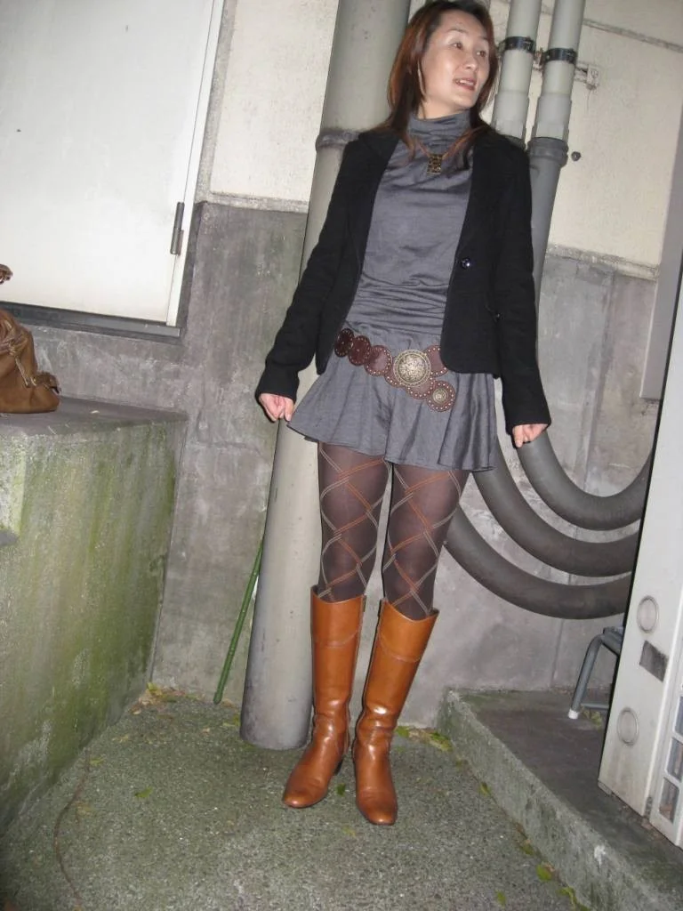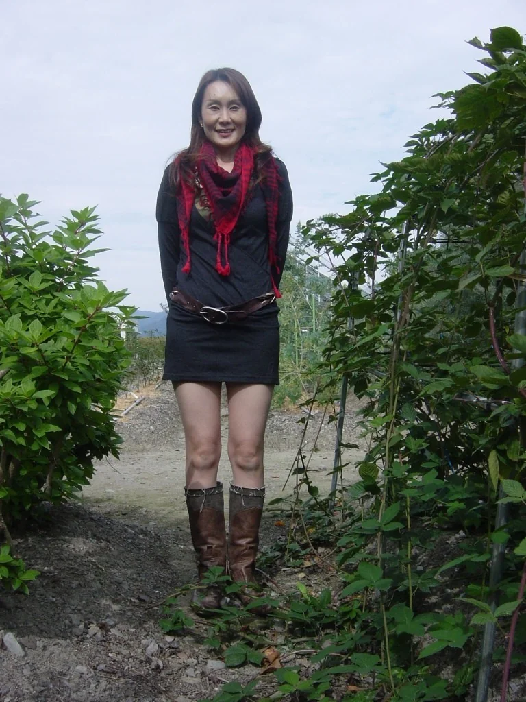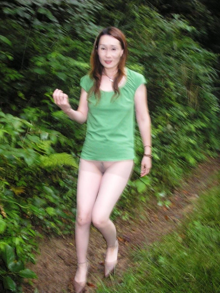Fotos de uma mulher asiática madura a despir-se ao ar livre