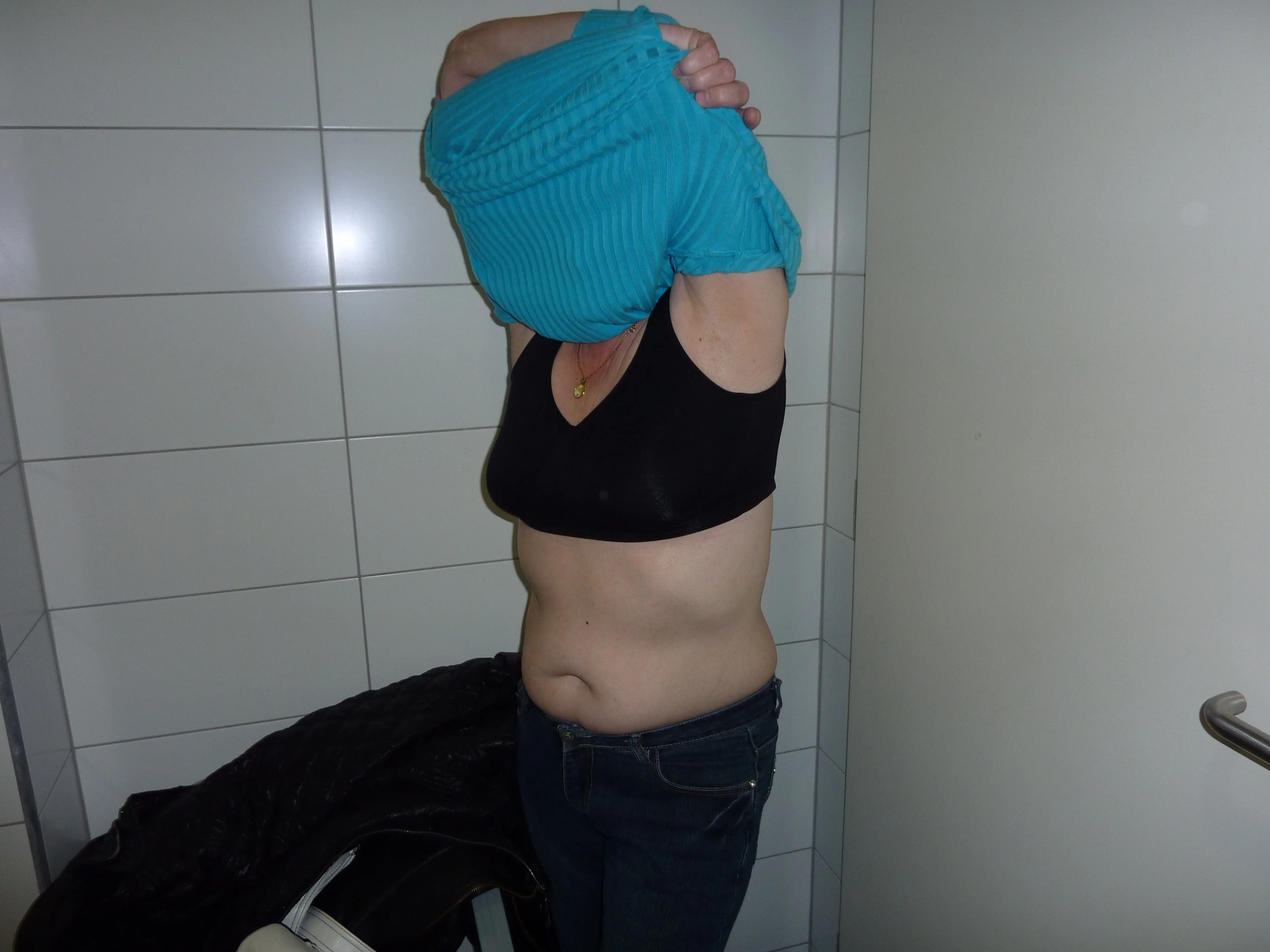 Loira mais velha exibiu seus seios no parque